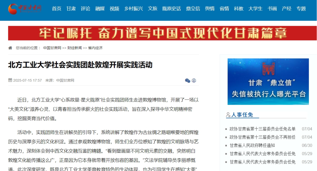 中國(guó)甘肅網(wǎng):北方工業(yè)大學(xué)社會(huì)實(shí)