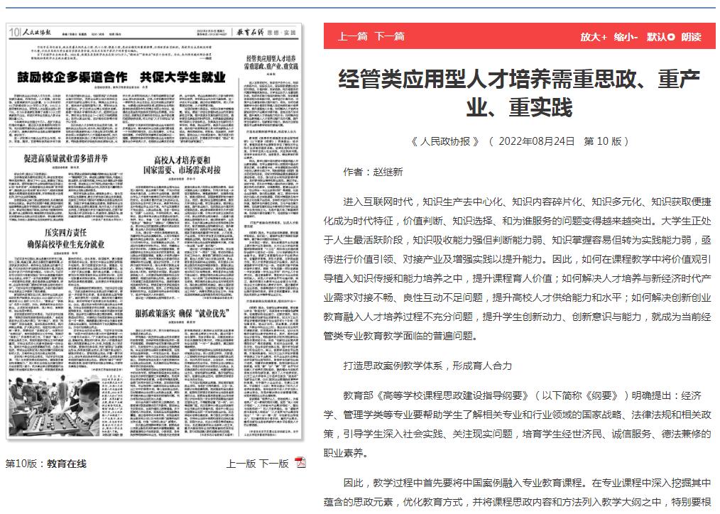 人民政協(xié)報(bào)刊載我校教師關(guān)于經(jīng)管