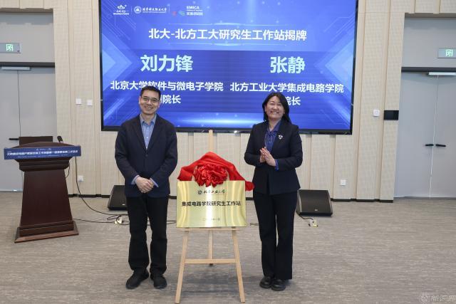 在此次會議上,我校集成電路學院與北京大學集成電路學院以“1+1”共建的形式入駐北京集成電路產教融合基地,并共建研究生工作站。北京大學軟件與微電子學院副院長劉力鋒和我校集成電路學院副院長張靜共同為北方工業大學產教融合基地和研究生工作站揭牌。學院還與勝科納米科技(北京)有限公司進行了就業實踐實習基地的揭牌儀式。