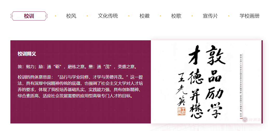 集中展示校訓、校風、文化傳統、校徽、校歌、宣傳片、學校畫冊等文化元素。
