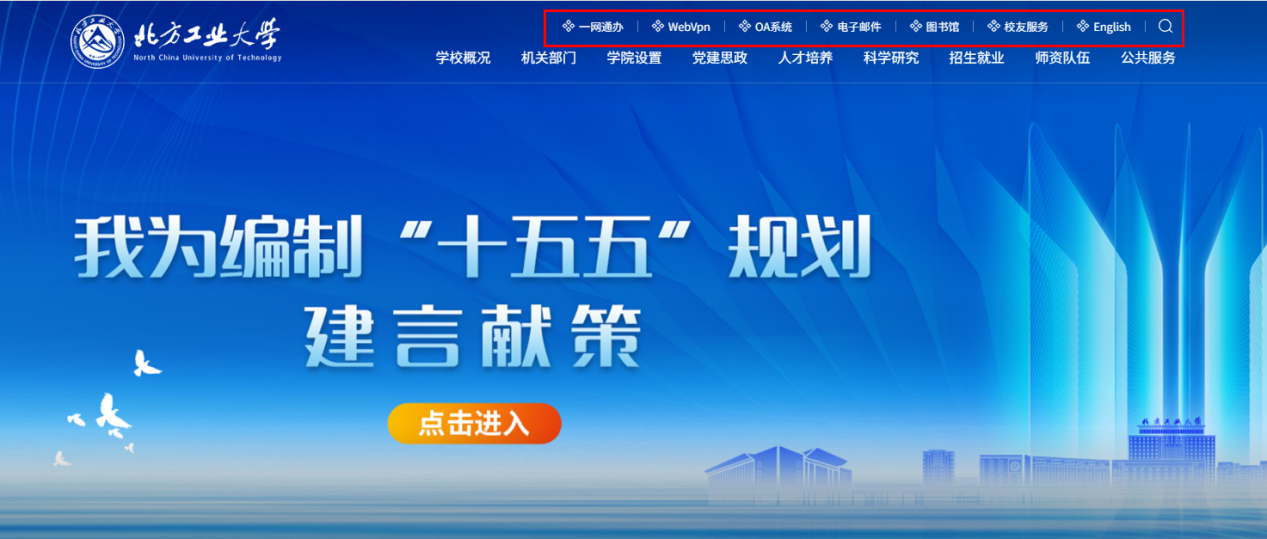 1.網站頂部增加服務功能快捷按鈕,快速定位“一網通辦”“webvpn”“電子郵件”等常用功能。