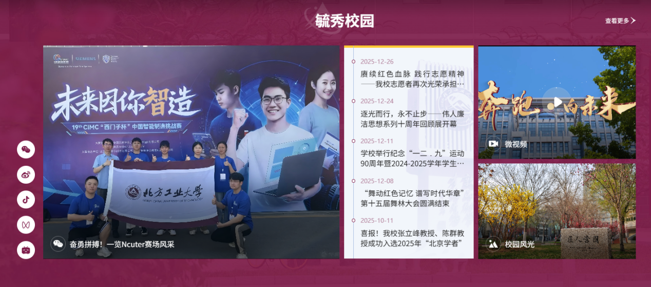 2026年是“十五五”的開局之年,北方工業大學也將迎來建校80周年華誕。為了更好地展示師生建設高水平工科大學的奮進姿態,講好新時代北方工大高質量發展故事,學校官網進行全面升級改版。