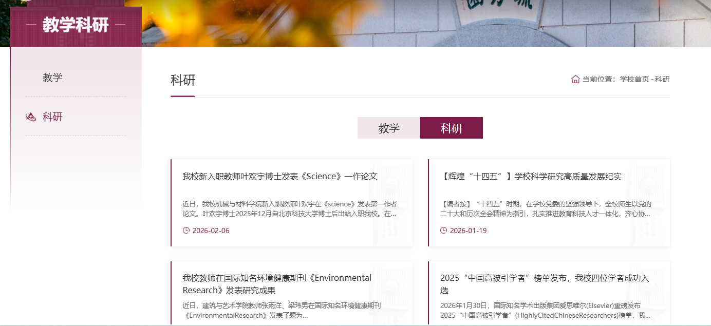 1.新增“教學.科研”欄目,聚焦學校教學工作創新兩點,跟蹤科研動態,展現學校助力高水平科技自立自強生動實踐。