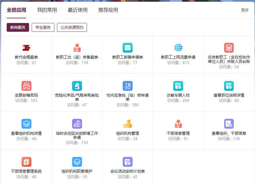 2.升級完善“一網通辦”功能。強化“一站式”服務,“系統直通車”直通校內各個服務系統,高效辦理網上業務。