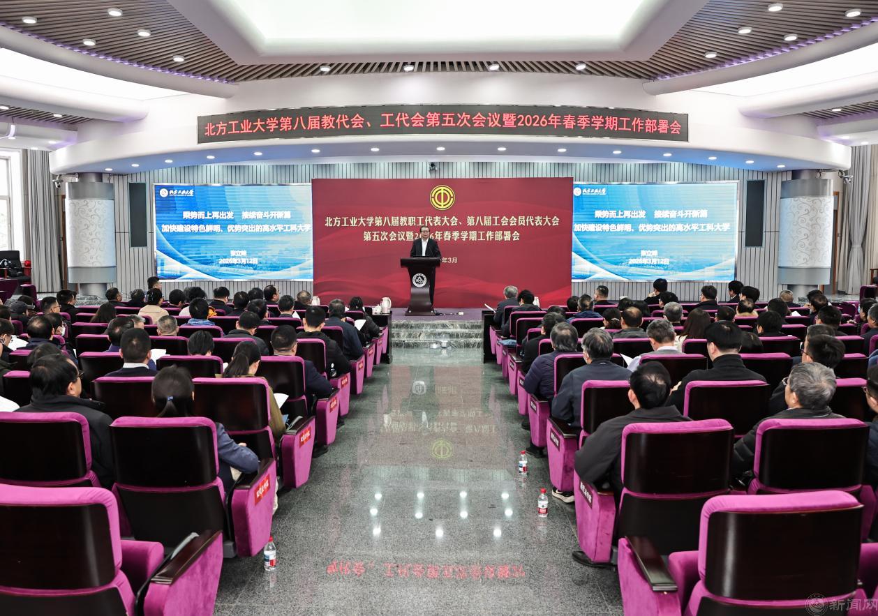 黨委副書記、校長張立峰作《乘勢而上再出發接續奮斗開新篇加快建設特色鮮明、優勢突出的高水平工科大學》主題報告,從四個方面對全年工作進行部署。一是加強黨的全面領導,以“九個聚焦”為抓手,不斷夯實事業發展的政治根基。聚焦“政治建設”,堅決做到“兩個維護”;聚焦“思想建設”,筑牢思想政治根基;聚焦“巡視整改”,推動問題解決提升治理能力;聚焦“嚴的總基調”,縱深推進全面從嚴治黨;聚焦“強基創優”,全面提升基層黨組織組織力;聚焦“能力建設”,鍛造高素質專業化干部隊伍;聚焦“教育家精神”,大力加強師德師風建設;聚焦“凝心聚力”,高質量推動建校80周年系列工作;聚焦“團結奮進”,共建文明和諧校園。二是落實立德樹人根本任務,實施“五個深化”舉措,著力提升高水平應用型人才培養質量。深化“興工報國”特色思政品牌,持續提升思想政治教育的針對性和實效性;深化“三全育人”推進“五育并舉”,持續做好學生綜合素質培養;深化“教育教學改革”,切實加強專業內涵建設;深化“產教融合、科教融匯”,推動研究生教育高質量發展;深化“招培就聯動”,全力促進高質量充分就業。三是強化頂層設計,以“七個推動”為重點,奮力推動“十五五”規劃良好開局。高質量完成“十五五”規劃的編制工作,確保開好局起好步;推動系統優化學科布局,夯實優勢與特色學科體系;推動重點項目協同發力,標志性成果取得突破;推動深化人事制度改革,強化高水平師資隊伍建設;推動有組織科研與成果轉化,持續提升科研創新能力;提升國際合作交流質量,推動教育高水平對外開放;推動優化內部治理,提高依法治校能力。四是優化辦學條件,統籌推進“五個堅持”,建設開放共享美麗平安的智慧校園。堅持掛圖作戰,高效有序推進延慶新校區建設;堅持精細化管理,提高資源使用效益;堅持統籌協調,改善校園硬件基礎設施;堅持數智賦能,構建智慧校園新生態;堅持大安穩體系,統籌發展與安全。