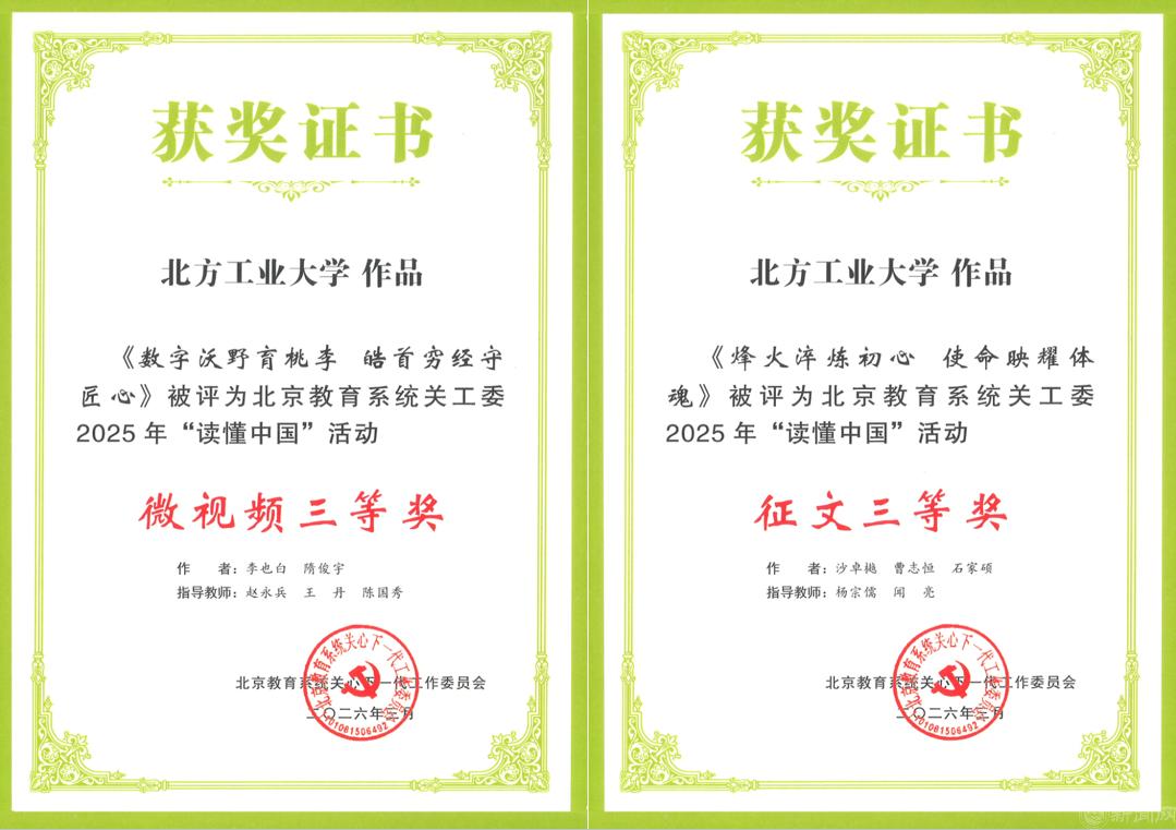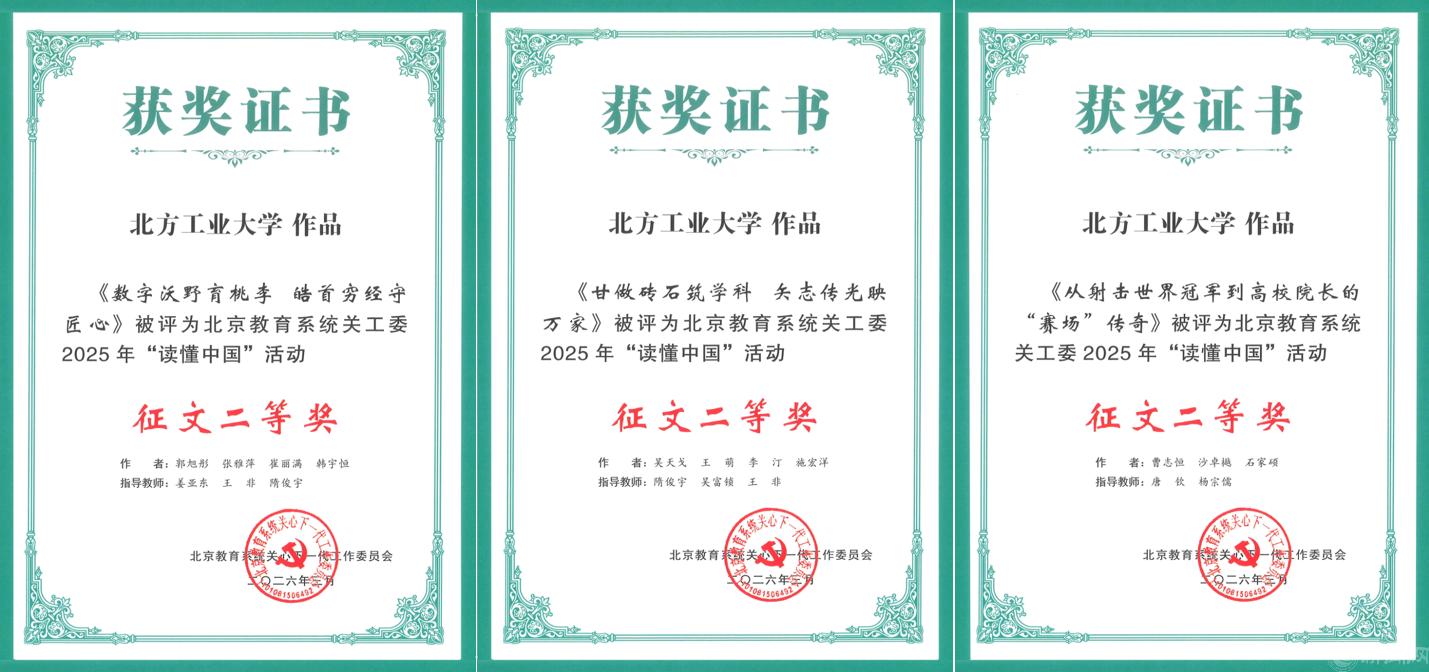 我校關(guān)工委開展的2025年“讀懂中國(guó)”活動(dòng)、信息宣傳工作以及軍訓(xùn)服裝捐贈(zèng)工作均受到北京教育系統(tǒng)關(guān)工委表揚(yáng)。“讀懂中國(guó)”活動(dòng)征文榮獲北京教育系統(tǒng)關(guān)工委二等獎(jiǎng)3篇、三等獎(jiǎng)1篇,微視頻榮獲三等獎(jiǎng)1項(xiàng)。隋俊宇開展的信息宣傳工作受到北京教育系統(tǒng)關(guān)工委表揚(yáng)。