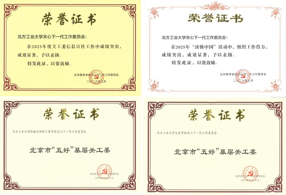 3月16日,北京教育系統(tǒng)關(guān)工委2026年度工作會(huì)召開。會(huì)議總結(jié)回顧2025年工作,部署2026年工作任務(wù),并通報(bào)了2025年“讀懂中國(guó)”活動(dòng)、信息宣傳工作的開展情況以及北京高校軍訓(xùn)服裝捐贈(zèng)工作情況。我校受到3項(xiàng)集體表揚(yáng),1項(xiàng)個(gè)人表揚(yáng),5項(xiàng)優(yōu)秀作品表彰。會(huì)議還為北京市關(guān)工委認(rèn)定的“五好”基層關(guān)工委發(fā)放證書,我校機(jī)械與材料工程學(xué)院關(guān)工委、文法學(xué)院關(guān)工委被認(rèn)定為北京市“五好”基層關(guān)工委。