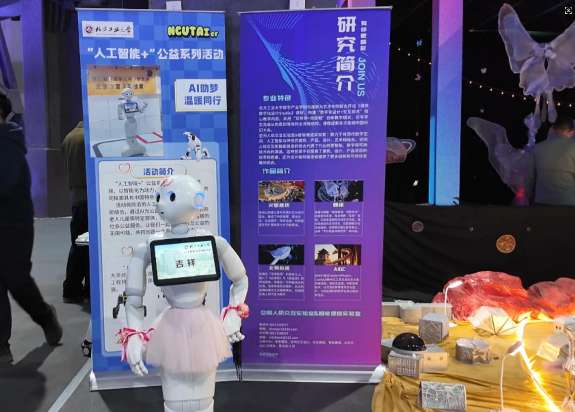智能學院帶來的兩款具身智能機器人,成為現(xiàn)場兼具溫度與科技感的亮點。深耕特殊兒童公益領域多年的 “吉祥”機器人,作為學校落地早、持續(xù)迭代的經(jīng)典具身智能項目,將前沿人工智能技術與公益事業(yè)深度融合,走出了科技向善的創(chuàng)新路徑;“霸王別姬”京劇機器人則以科技賦能傳統(tǒng)文化,讓經(jīng)典藝術在科幻舞臺上煥發(fā)新彩。