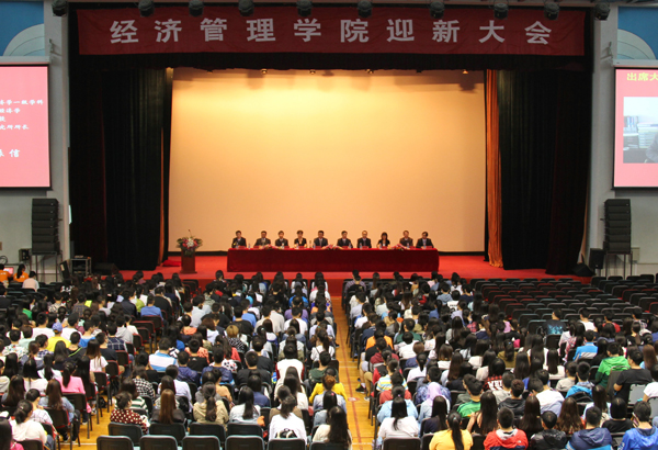 9月10日下午,經(jīng)濟(jì)管理學(xué)院在體育館召開2015級(jí)迎新大會(huì)。校黨委副書記郭玉良,學(xué)院領(lǐng)導(dǎo)班子成員、各系(中心)主任、責(zé)任教授代表以及新生班導(dǎo)師、輔導(dǎo)員等出席會(huì)議。會(huì)議由學(xué)院黨委副書記張加強(qiáng)主持。