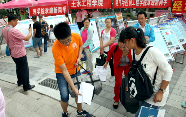 各學院更將迎新工作做到細致入微:理學院在新生入學之前就建立微信平臺加強了與新生的溝通,并通過“理院小靈通”實時發布學院的相關信息,還設計了“師生連心卡”方便師生聯系;機械與材料工程學院加大了黨支部對學生的指導,推行“學長領航”,為每名新生都配備了兩名入黨聯系人;電子信息工程學院和計算機學院為本院新生準備了嶄新的T恤衫,讓新生感受到學院的團隊氛圍;經濟管理學院在迎新現場特別設計了“迎新金榜”,讓同學重溫榜上有名的自豪;電氣與控制工程學院向新生發放調查問卷,及時掌握新生的生活和思想動態,便于更加有針對性地開展學生工作。為了方便與家長進行溝通,各學院都將在迎新結束后召開家長會,與家長互動形成學生培養的合力。