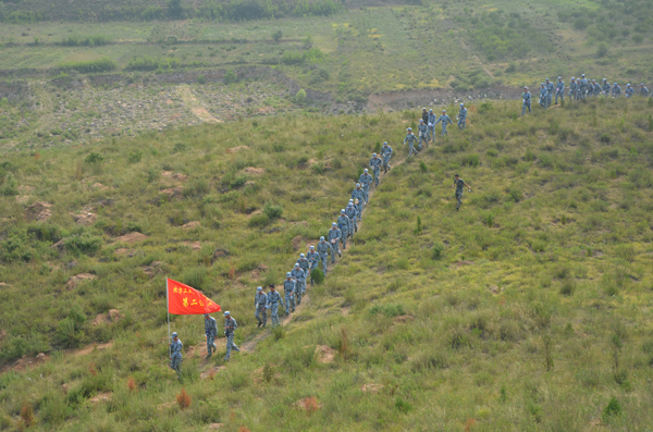7月14日上午,2014級學(xué)生軍訓(xùn)團(tuán)按照軍訓(xùn)大綱的要求組織了野外拉練。在拉練過程中,各連隊(duì)依次進(jìn)行了傳遞口令、躲避敵空中偵察和快速通過染毒區(qū)域等戰(zhàn)術(shù)訓(xùn)練科目。雖然天氣炎熱、山路崎嶇,但同學(xué)們隊(duì)形緊湊,步伐整齊,士氣高昂,高質(zhì)量地完成了各項(xiàng)規(guī)定科目,并在規(guī)定時(shí)間內(nèi)安全返回基地。
