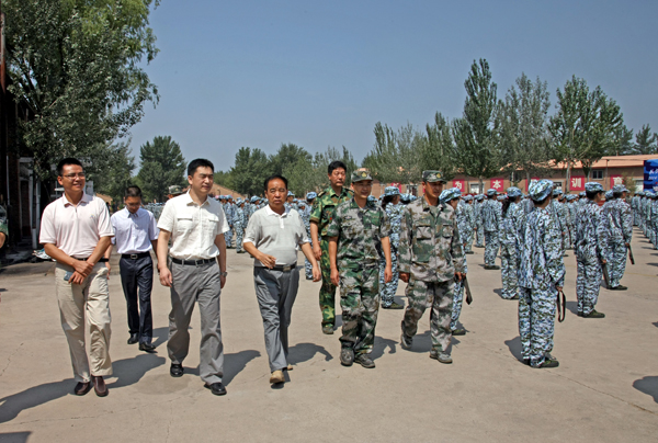 7月13日上午,校黨委書記謝輝、學生工作部兼武裝部部長李云馳以及各學院領導和部分輔導員、班導師組成的慰問團到延慶康莊611軍訓基地慰問2014級軍訓團師生。