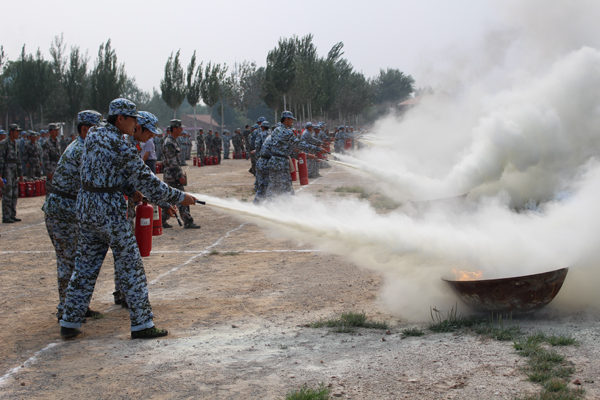 7月10日下午,2014級軍訓學生滅火逃生演練活動在軍訓基地舉行。此次活動由2014級軍訓團和我校保衛處共同組織,軍訓基地給予了大力支持和配合。在演練現場,我校保衛處梁令富老師為大家講解了滅火器的種類及使用方法。隨后,全體參訓學生每三人一組進行了滅火實戰演習。隨著一聲聲“滅火!”指令的發出,同學們迅速地提起滅火器,手握噴管向火源噴掃,迅速準確地完成滅火任務。