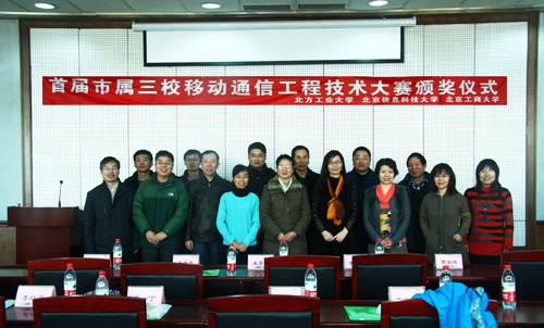 1月4日,由北京工商大學、北京信息科技大學和北方工業大學聯合發起的首屆市屬三校移動通信“工程技術”大賽頒獎典禮在我校四教十五層報告廳舉行。北京工商大學計算機與信息工程學院副院長于重重、北京信息科技大學信息與通信學院副院長李學華,我校教務處處長王景中、電子信息工程學院黨委書記張常年、副院長曹淑琴,以及兄弟院校師生共百余人出席頒獎典禮。典禮由電子信息工程學院黨委副書記王偉賓主持。