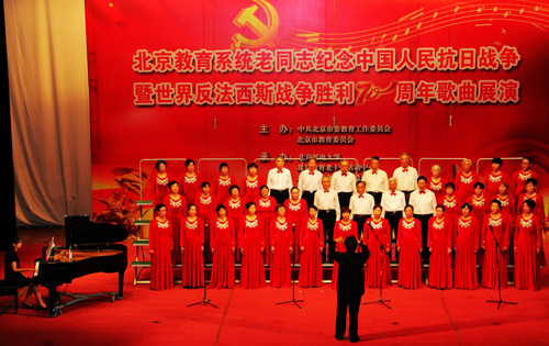 6月26日上午,我校老教師合唱團首次組隊參加了由北京市委教育工委舉辦的北京市教育系統(tǒng)老同志紀念抗日戰(zhàn)爭勝利70周年歌曲匯演活動。中央音樂學院、中央民族大學等13所院校參加了此次匯演。