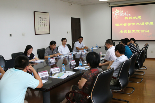 6月25日下午,湖南省學位辦調研組一行8人來我校研究生院交流訪問。調研組專家來自國防科技大學、中南大學、湘潭大學、湖南農業大學和湖南中醫藥大學。我校副校長羅學科、研究生院負責培養、招生和學科建設的老師出席了交流會。