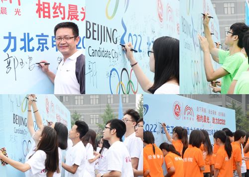參與活動的師生在郭書記的帶領下,在活動背景板上簽下名字,并圍繞足球場慢跑,以實際行動支持北京申辦2022年冬奧會。大家紛紛表示,申辦2022年冬奧會是中國人民的一件大事,是中國再次向世界展現魅力的好機會,我們應該以實際行動全力支持。