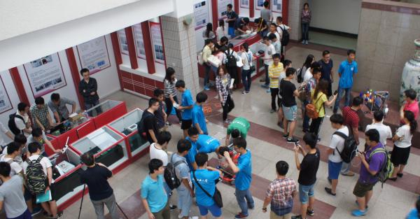 6月11日為獲獎項目現場交流環節,活動吸引了眾多學生前來觀摩、交流,每一件參展的作品均由作者親自講解,大部分作品還允許參觀者親自體驗、操作。