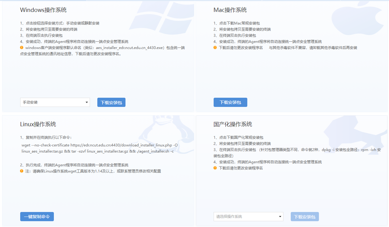 安裝范圍:托管至網信中心的物理服務器和虛擬機資源。