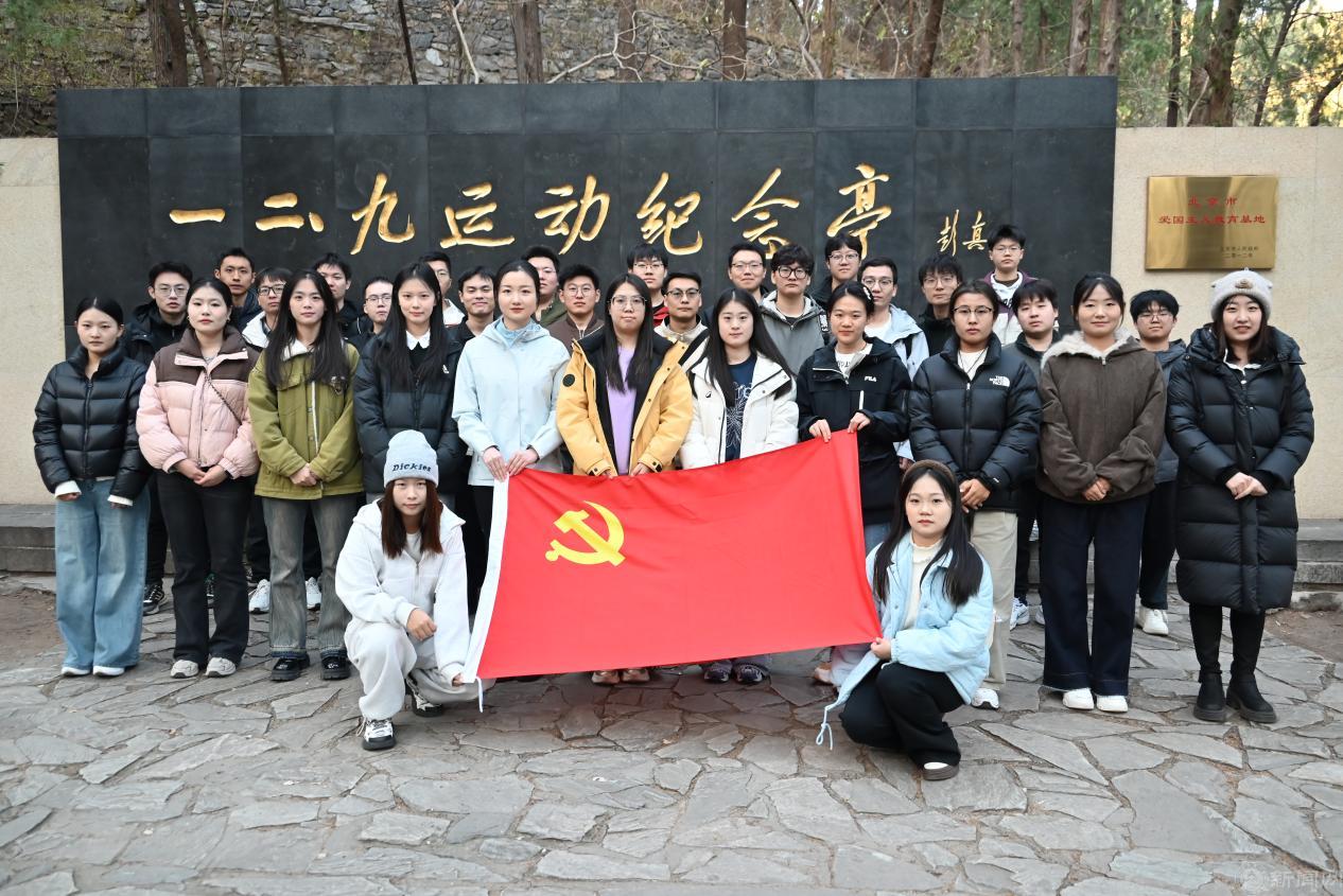 參觀結(jié)束后,在莊嚴(yán)肅穆的“一二·九”運(yùn)動(dòng)紀(jì)念亭前,黨員同志們懷著對革命先輩的崇敬之情,在支部書記的領(lǐng)誓下,重溫入黨誓詞。激昂洪亮的誓言回蕩在櫻桃溝山谷間,既是對革命先輩的深切致敬,更在歷史與現(xiàn)實(shí)的交響中淬煉出“科技報(bào)國”的使命擔(dān)當(dāng)。