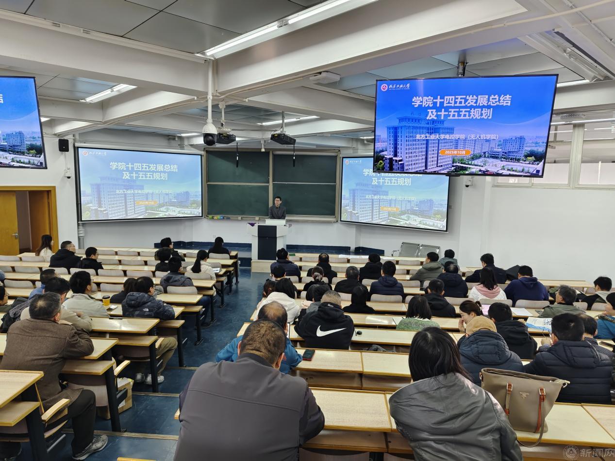 會上,院黨委副書記、院長董哲作 “十四五” 期間學(xué)院工作總結(jié)匯報。他從學(xué)科建設(shè)、人才培養(yǎng)、科研創(chuàng)新、平臺建設(shè)、團隊發(fā)展到社會服務(wù)六大核心領(lǐng)域,系統(tǒng)梳理了“十四五”期間的建設(shè)成果,同時也全面總結(jié)了無人機學(xué)院成立一年來的建設(shè)成果。在回顧成就的基礎(chǔ)上,董哲介紹了學(xué)院面向 “十五五” 時期學(xué)院將聚焦的五大重點任務(wù):一是優(yōu)化學(xué)科布局,強化優(yōu)勢學(xué)科引領(lǐng)作用,培育新興交叉學(xué)科增長點;二是強化科研能力,聚焦國家戰(zhàn)略需求和行業(yè)發(fā)展痛點,打造特色科研品牌;三是提升學(xué)生培養(yǎng)質(zhì)量,深化教育教學(xué)改革,構(gòu)建適應(yīng)新工科發(fā)展的人才培養(yǎng)體系;四是深化產(chǎn)教融合,拓展校企合作廣度與深度,實現(xiàn)產(chǎn)學(xué)研協(xié)同共贏;五是加快新工科建設(shè),推動學(xué)科專業(yè)與信息技術(shù)、人工智能等前沿技術(shù)深度融合。基于上述規(guī)劃,董哲提出學(xué)院“十五五”建設(shè)目標(biāo)的初步構(gòu)想,并要求學(xué)院全體教師集思廣益,積極參與學(xué)院“十五五”規(guī)劃的編制工作。