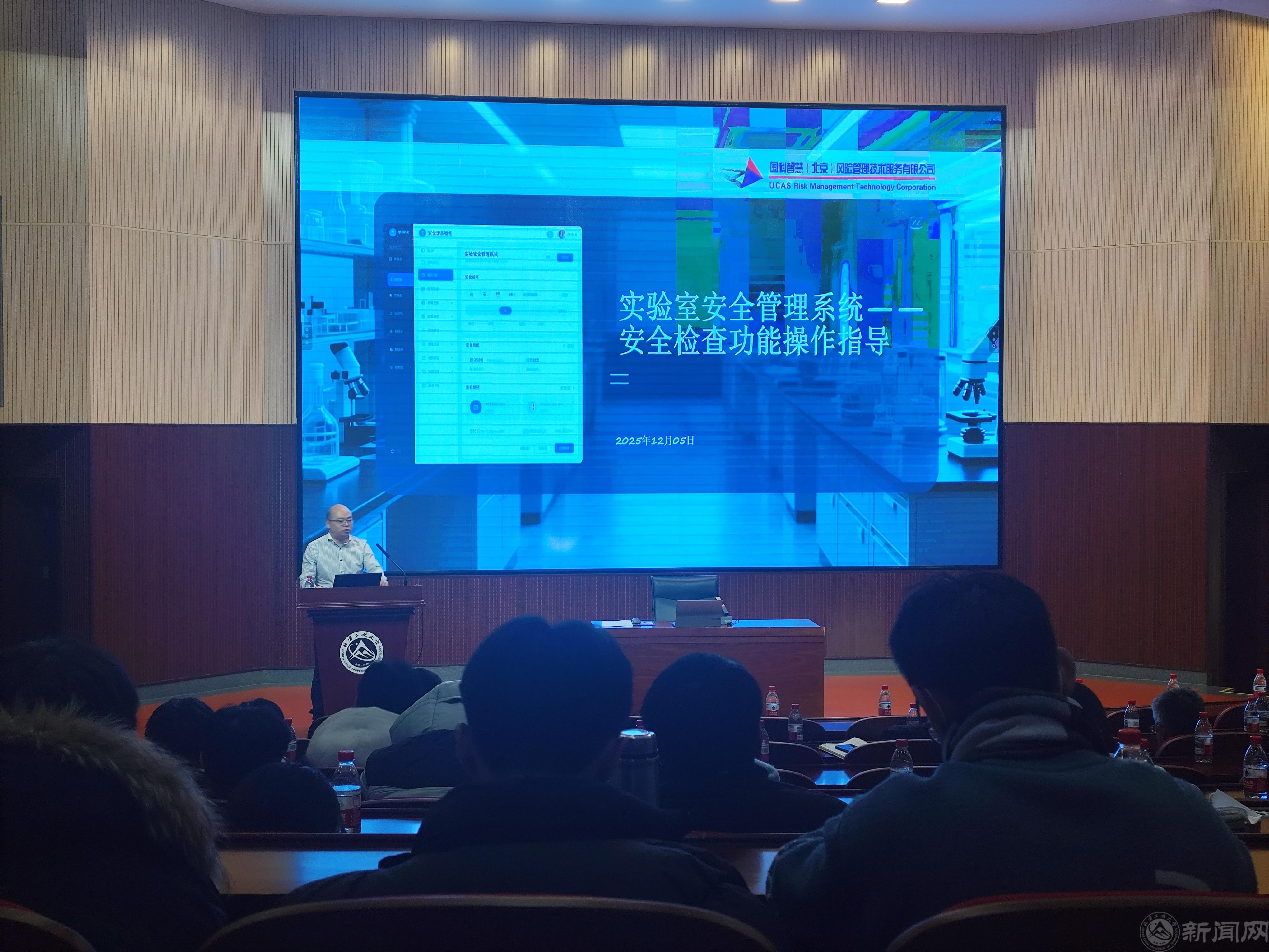 隨后,北京國科智慧信息有限公司尹慶平就學校實驗室安全管理系統(tǒng)的使用作專題培訓。培訓內(nèi)容緊扣系統(tǒng)功能模塊,涵蓋安全巡檢、隱患上報、整改跟蹤等多個方面,旨在通過信息化、智能化手段提升安全管理效率和規(guī)范化水平,為實驗室安全運行提供技術(shù)支撐。