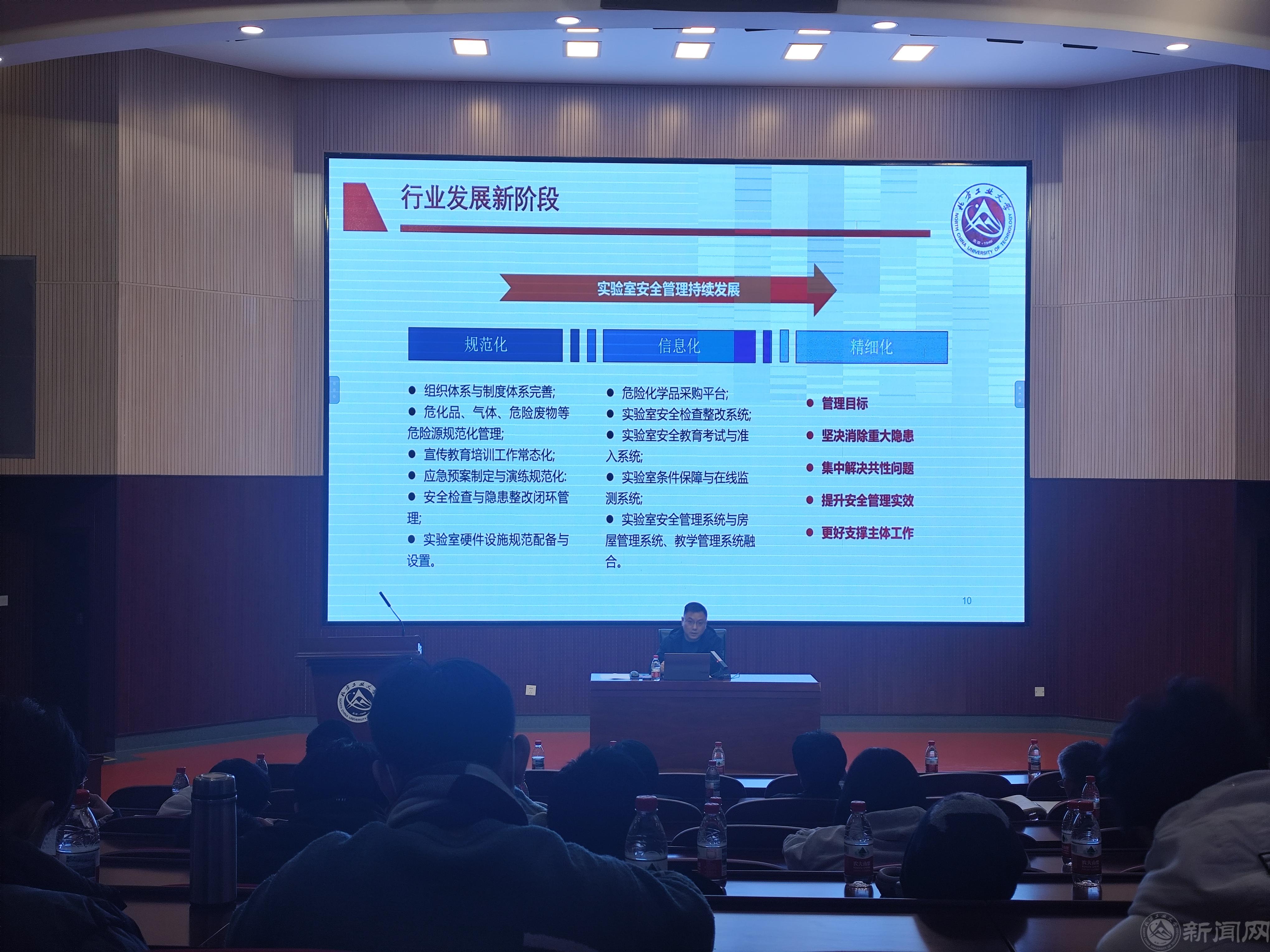 培訓會上,資產(chǎn)與實驗室安全管理處副處長劉祥墜以《強化風險管控,加強專項治理,確保實驗室絕對安全》為題,對《北方工業(yè)大學實驗室安全管理辦法》和《北方工業(yè)大學實驗室安全分級分類管理辦法(試行)》等制度文件進行宣講,他結(jié)合近年來國內(nèi)外高校發(fā)生的典型實驗室安全事故案例進行了深入剖析和警示教育,并就巡視反饋整改、?;饭芾?、分級分類管理等問題進行了詳細解讀。