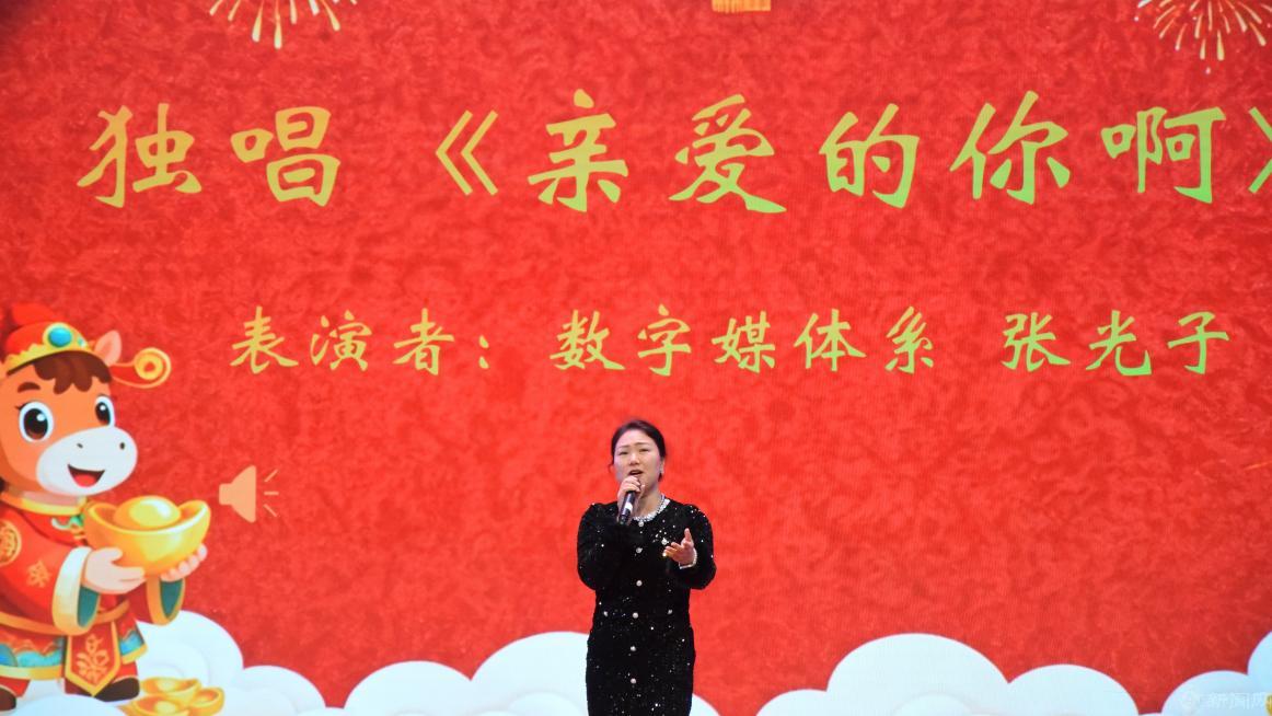 表彰環節結束后,一場精彩紛呈的文藝匯演將聯歡會推向高潮。教師們一改平日嚴謹形象,展現出多才多藝的一面。開場歌伴舞《教師陣線聯盟》以輕松幽默的方式展現了教師隊伍的凝聚力與戰斗力;古典與現代交融的彈唱曲目《青花瓷》彰顯了學院教師的人文藝術素養;互動游戲《emoji表情猜詞語》引發陣陣歡笑,拉近了同事間的距離;深情合唱《歌唱祖國》表達了教師們對祖國的熱愛與祝福;獨唱《親愛的你啊》用溫暖歌聲傳遞同事情誼;而大合唱《恭喜發財》則帶來了濃濃的年節喜慶氣氛。特別值得一提的是,學院教師帶來的武術表演《中國功夫》剛柔并濟,展現了中國傳統文化的魅力;壓軸歌曲《明天會更好》則唱出了全體教職工對學院未來發展的堅定信心和美好期許。