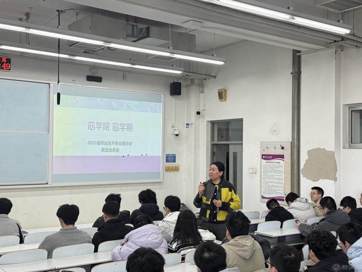 為扎實推進2026屆畢業生就業工作,引導學生樹立正確就業觀念,把握春季招聘關鍵期,集成電路學院于3月11日上午在瀚學樓305召開畢業班開學班會暨就業動員會。學院副院長張靜、黨總支副書記陳衛、輔導員王鑫淼、班導師鞠家欣、王艷蓉以及2026屆全體畢業生參加此次會議。