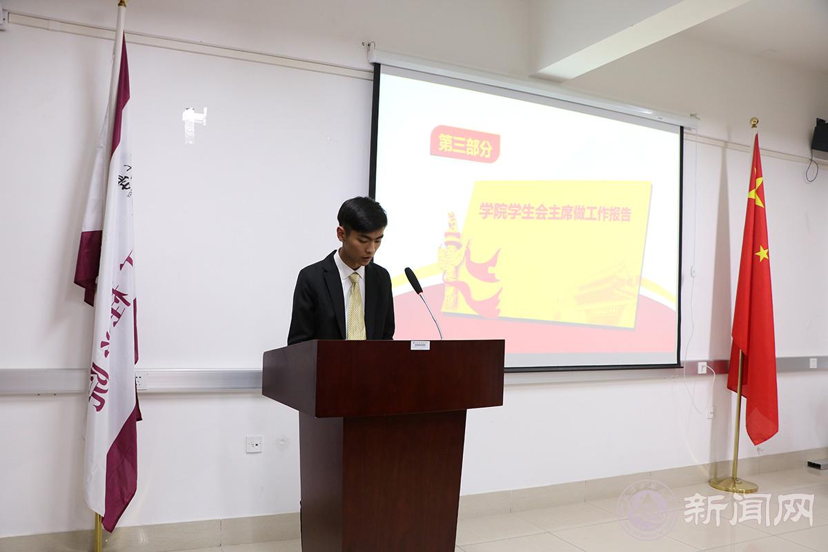 大會在莊嚴的中華人民共和國國歌中開始。院學(xué)生會主席張昊然向?qū)W生代表及領(lǐng)導(dǎo)們做了題為《求實創(chuàng)新繼往開來為打造學(xué)生會服務(wù)學(xué)生的新局面而努力》的學(xué)生會工作報告。報告總結(jié)回顧了過去一年來的學(xué)院學(xué)生會工作和成績,從思想引領(lǐng)、學(xué)風建設(shè),組織建設(shè)、打造學(xué)院品牌活動、學(xué)生干部隊伍培養(yǎng)等方面做了梳理和總結(jié)。同時號召廣大土木學(xué)子在“中國夢”的激勵下,在“敦品勵學(xué),才德并懋”校訓(xùn)的指引下,珍惜青春、匯聚力量,堅定理想信念、勇?lián)鷼v史使命,成長為有社會責任、有創(chuàng)新精神、有專門知識、有實踐能力、有健康身心的應(yīng)用型高級專門人才,在新時代偉大征程中為實現(xiàn)“兩個一百年”奮斗目標、實現(xiàn)中華民族偉大復(fù)興的中國夢奮力譜寫青春華章。