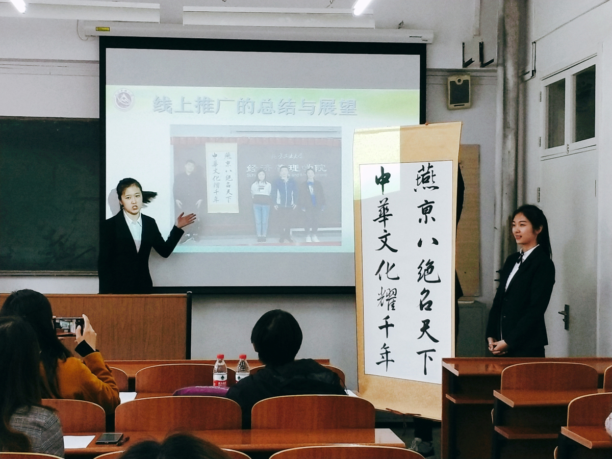 4月16日下午,由校團委主辦、經濟管理學院承辦的首屆非物質文化遺產傳承創意營銷大賽決賽在勵學樓218教室舉行。北京燕京八絕協會副秘書長、北京燕京八絕藝術館常務副館長楊寧老師以及管理系張立章、尚會英兩位老師共同擔任此次決賽的評委。