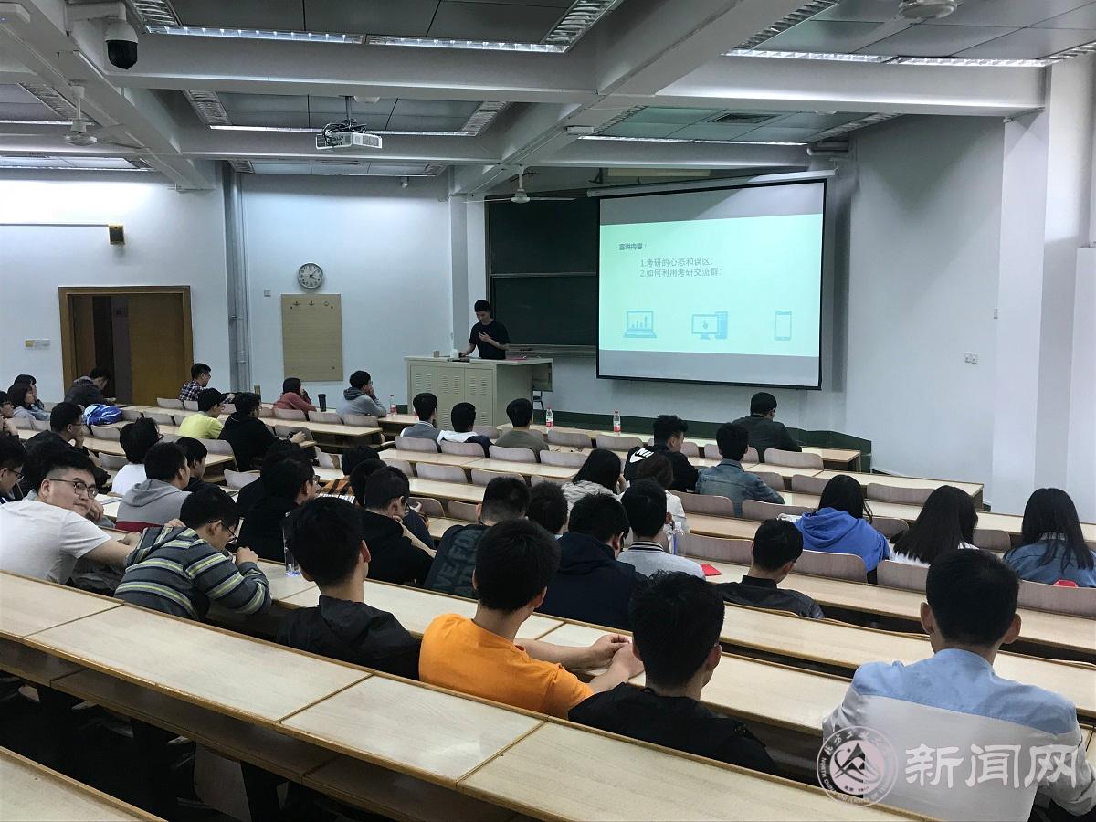 會上,2019年考研已被錄取的15級學生代表汪云峰、梁歡、羅嗣梧、張霄分別從學校的選擇、專業的學習、復習進度安排、心態的調整等方面與大家分享了考研的體會,為即將考研的16級同學提供了寶貴的經驗。