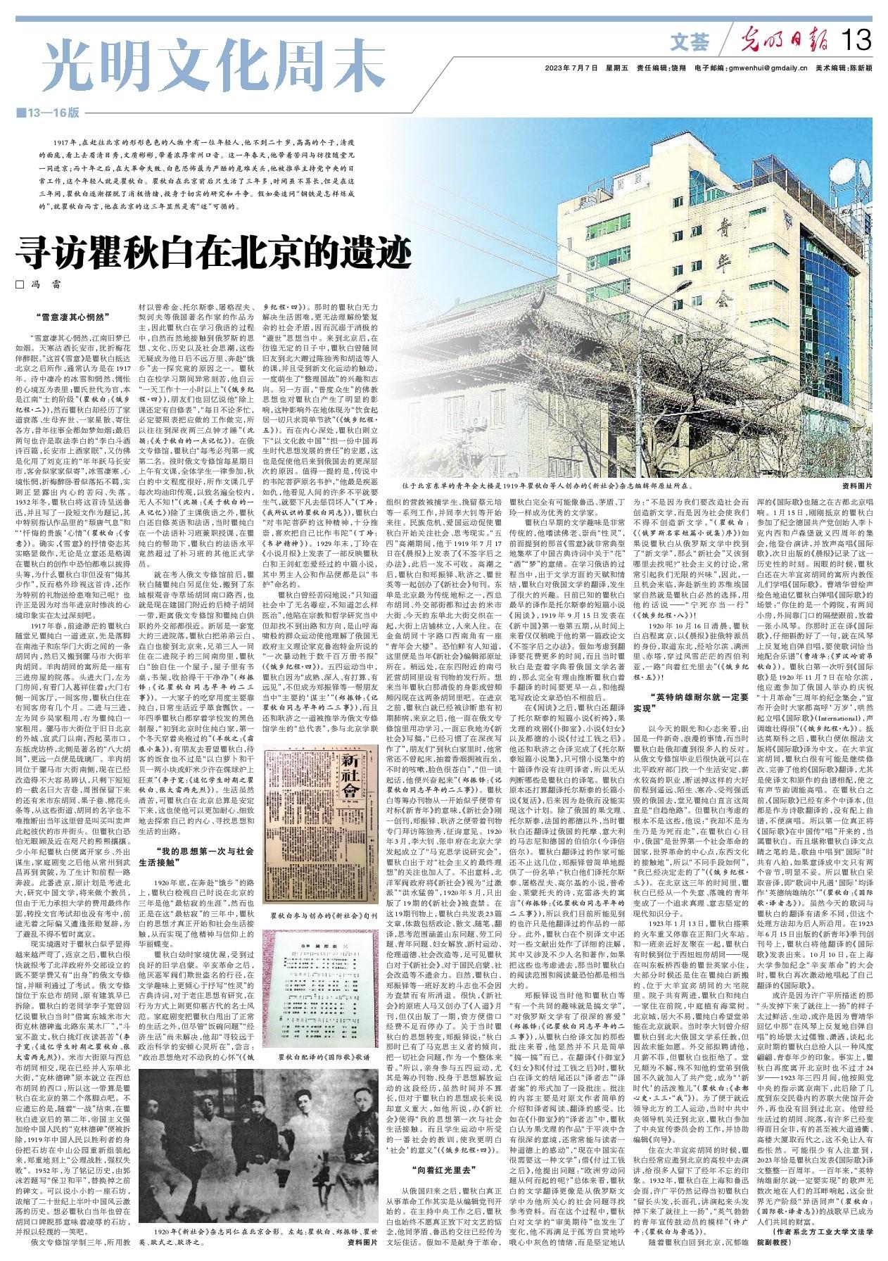 7月7日,《光明日報》在第13版以整版的篇幅發表了我校文法學院中文系副教授馮雷的文章《尋訪瞿秋白在北京的足跡》,全文8000余字。