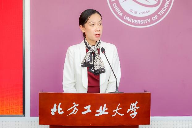 栗蘋在致辭中向獲得結業證書的同學們表示熱烈祝賀,并用“幸運、感謝、祝福”三個關鍵詞概括她對這一重要時刻的感觸。她表示,同學們作為數字產業學院的首屆結業生非常幸運,數字產業學院是我校為順應產教融合趨勢、加快培養高素質應用型人才而開展的創新性教學改革。通過加強與產業界的合作,引領學生將所學知識與產業需求緊密結合,將產業技術、產業認知、產業標準、產業規范以及先進產業理念融合在產業教育項目中。栗蘋對同學們的努力學習和積極態度表示贊賞,對合作企業、學院老師的大力支持與辛勤付出表示衷心的感謝,祝福同學們前程似錦、未來可期,希望大家能將在數字產業學院和北方工業大學所學到的知識應用于社會,將學到的人生經驗用于未來。