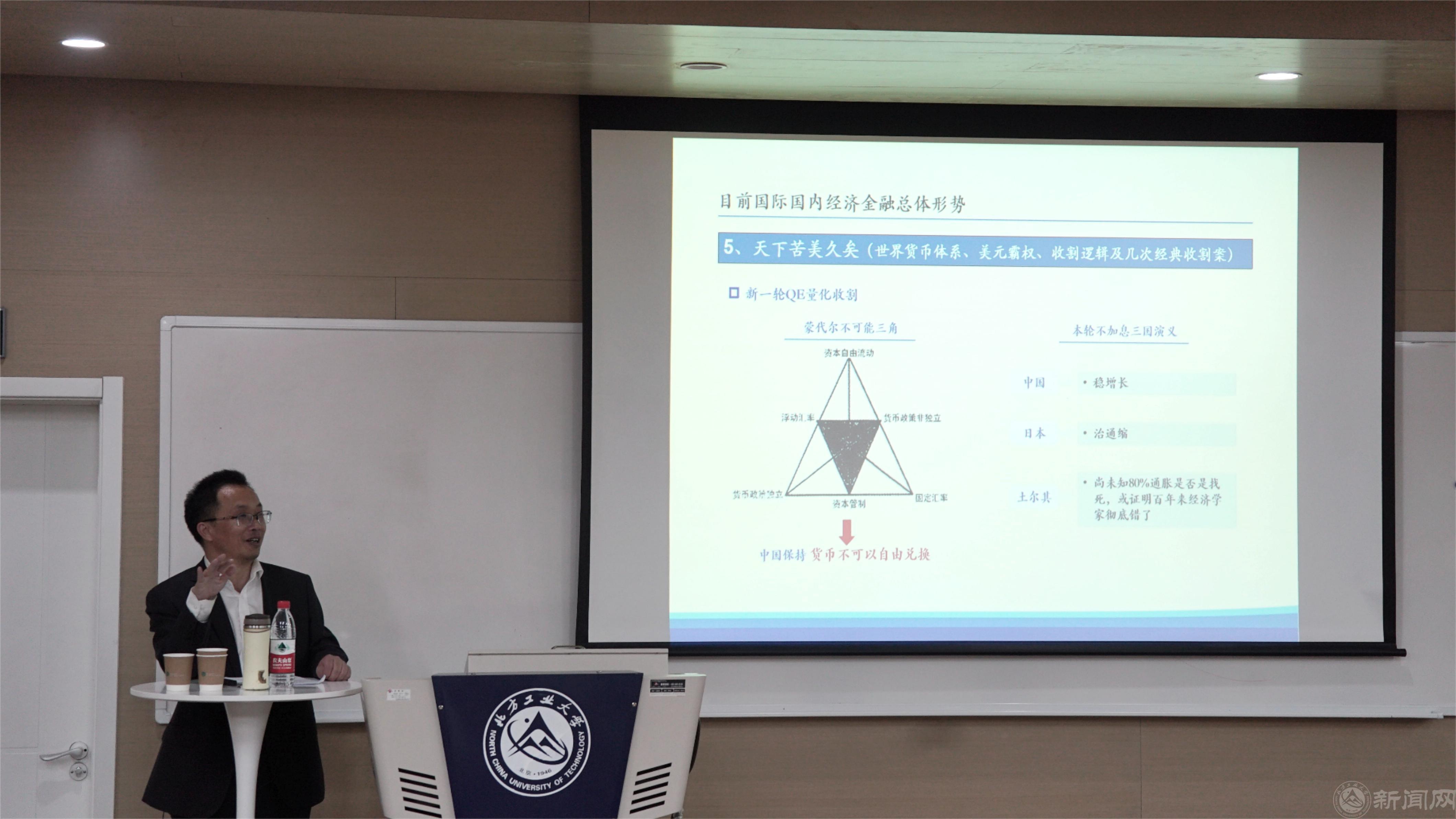 歐明青以“國際國內資本市場形勢及資本運作估值邏輯及實務”為主題,從近年來國內外經濟金融整體形勢出發,并結合實際,為在座師生們做了一堂生動的報告。歐明青以世界金融經濟格局與發展形勢為背景,詳細講解了全球經濟發展歷程和全球工業與制造業的發展現狀。歐明青還介紹了我國目前的經濟結構,通過對我國經濟社會的分析,為國家經濟發展提出了自己的觀點和看法。