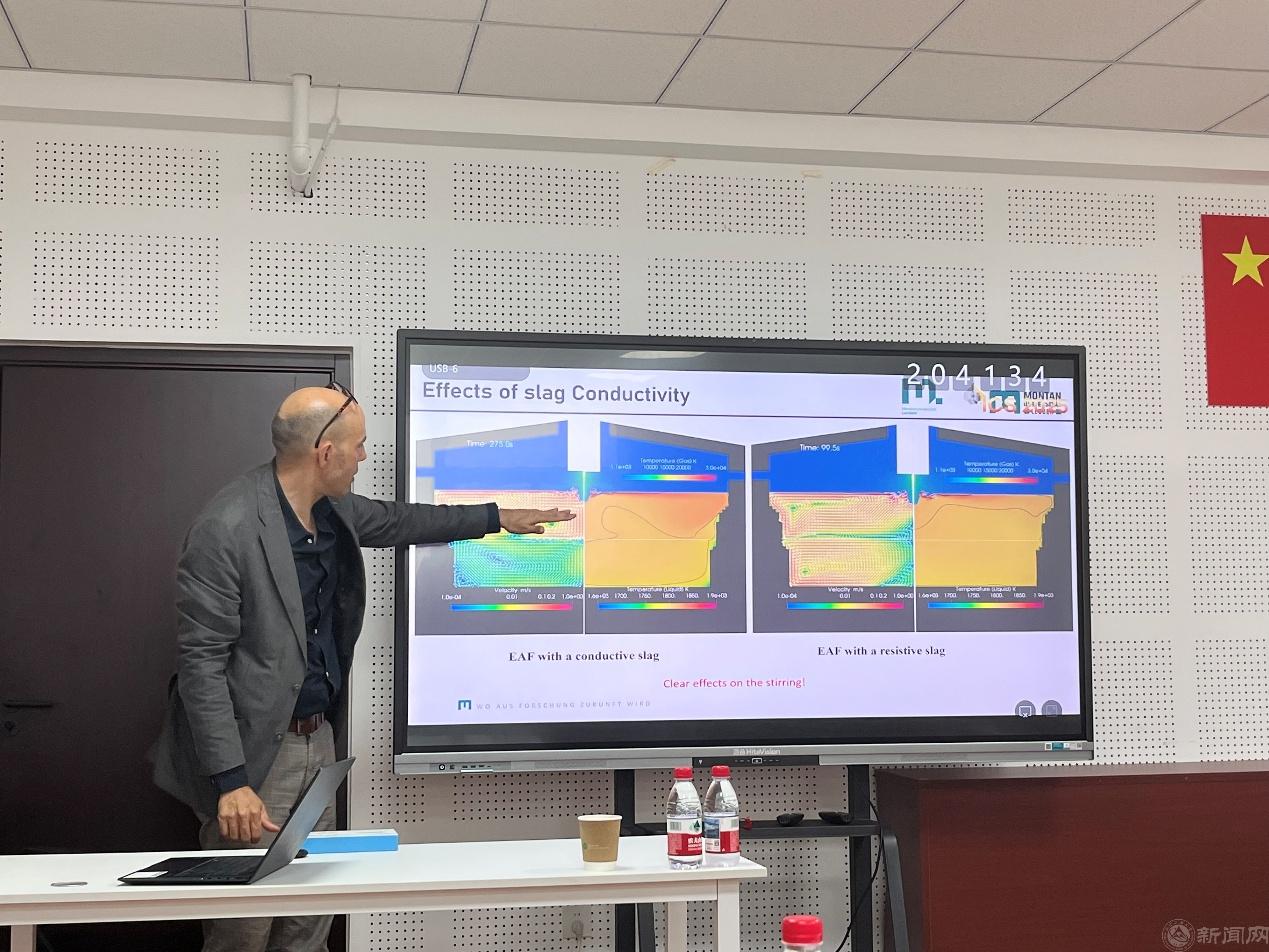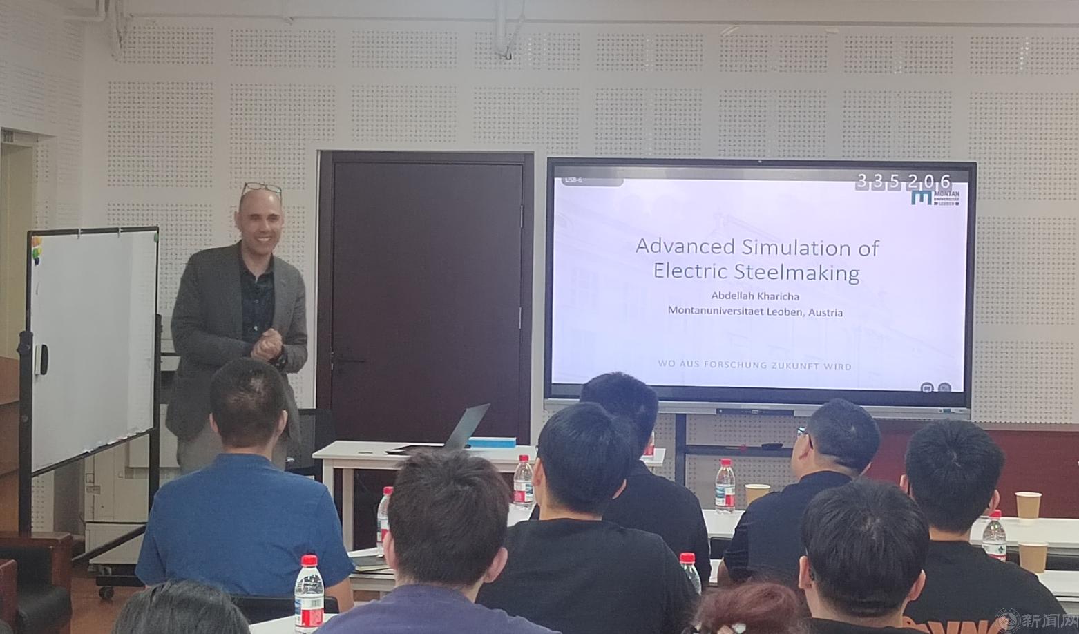 Kharicha 教授為院里師生做了題為 “Advanced Simulation of Electric Steelmaking(電爐煉鋼的數值仿真)” 的學術報告。報告聚焦電弧爐(EAF)、電渣重熔(ESR)、真空電弧重熔(VAR)等電爐煉鋼工藝,系統闡述了多物理場高級模擬技術在高溫熔煉過程中的理論和應用。