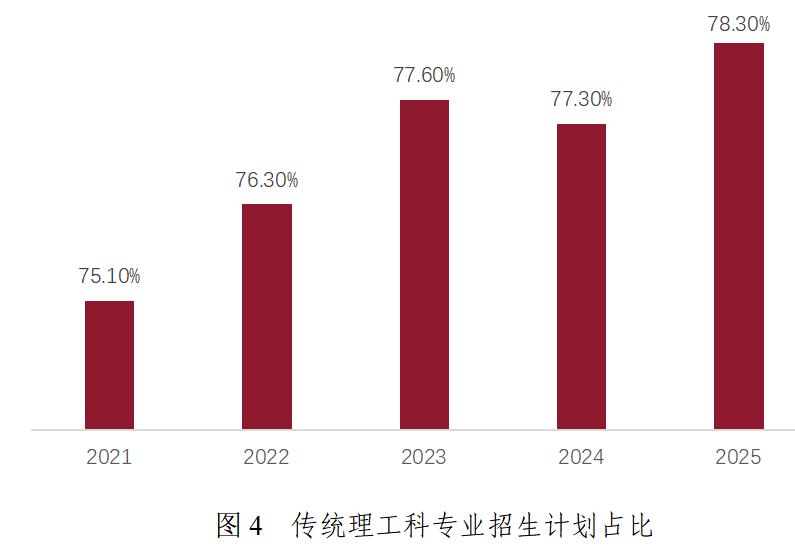 學(xué)校堅守工科底色,傳統(tǒng)理工科專業(yè)招生計劃占比始終保持在75%以上,2025年達到78.3%。這一比例分布與學(xué)校學(xué)科布局高度契合,確保了人才培養(yǎng)的專業(yè)性與針對性,為后續(xù)就業(yè)市場的核心競爭力奠定了堅實基礎(chǔ)。