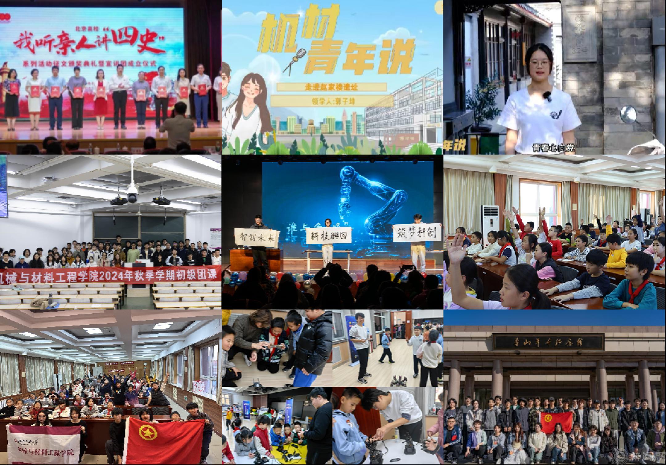 團(tuán)學(xué)工作蓬勃發(fā)展,構(gòu)建“分層分類、全域覆蓋”的理論學(xué)習(xí)機(jī)制,組建“機(jī)材青年說”宣講團(tuán)開展宣講近百場,覆蓋超萬人次;開展紅色主題實(shí)踐活動50場,覆蓋3000余人次;2名學(xué)生在北京市教工委舉辦的北京高?!拔衣犛H人講‘四史’”系列活動中獲獎,羅弘瑞同學(xué)斬獲一等獎并成為市宣講團(tuán)成員。