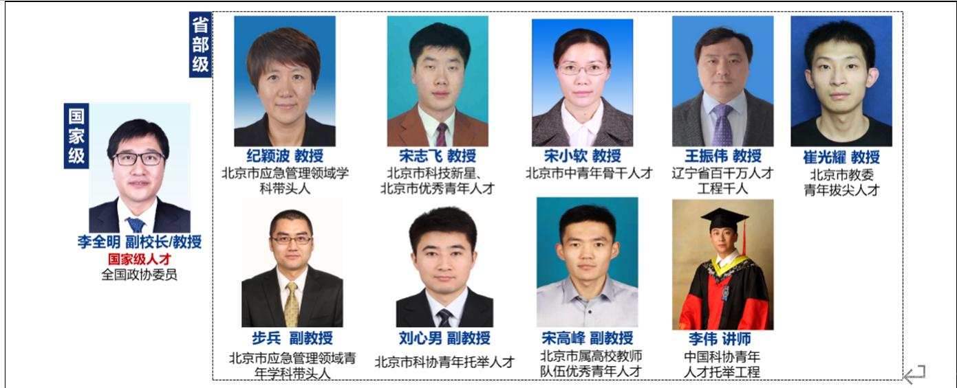 “十四五”期間累計引進人才14名,其中國家級人才 1名、中國科協青年托舉人才1名,補充其余師資7名、B崗教師4名,為學院高質量發展注入新鮮血液。人才培養成果突出,新增博導10名,教師入選北京市應急管理領域學科帶頭人1名、北京市科協青年托舉人才1名、北京市屬高校優秀青年人才1名。學院現有國家級人才1名、各類省部級人才9名,形成了層次分明、結構合理的師資梯隊。