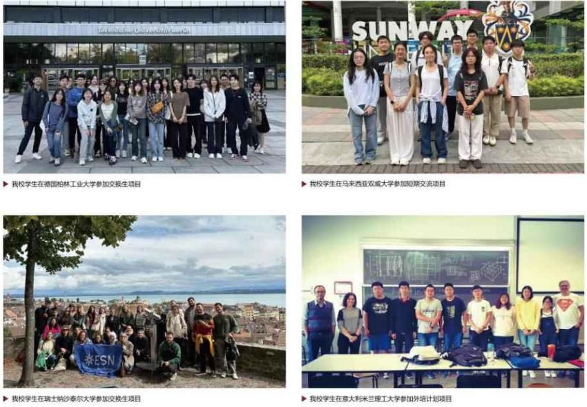 學校持續加強與國外高水平大學的交流合作,全面提升學生國際交流項目的層次與質量,與45個國家(地區)的148所高校及機構建立合作,“十四五”期間新增32所。其中涵蓋QS世界大學排名前500強院校14所,構建起覆蓋歐美、亞洲、大洋洲及 “一帶一路”共建國家重點區域的全球化合作網絡。
