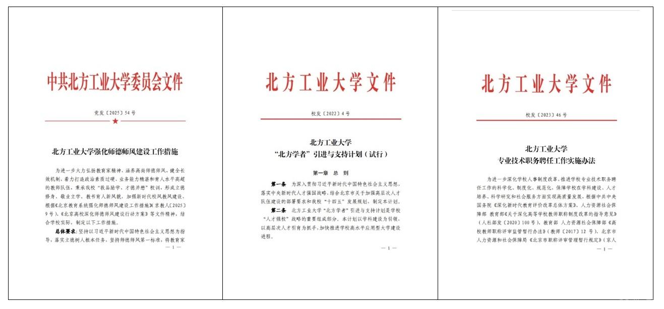 將制度建設作為深化人事制度改革的核心,"十四五"期間出臺師德師風、多元化師資引進、職稱評審、考核聘任、薪酬激勵等人事人才管理制度文件28項,出臺“北方學者”引進與支持計劃等人才引育文件,五年內兩次優化職稱評審方案,制定首個分類發展績效考核方案,增設二級單位考核發展性、目標責任指標,協同相關部門出臺教學科研成果激勵辦法,出臺《落實<高校教師黨建和思政工作質量標準>實施方案》等教師工作文件。通過一系列制度舉措,構建起覆蓋“引、育、評、聘、用、留”全鏈條的人事人才制度治理體系,為師資隊伍高質量發展提供了堅實的制度保障。