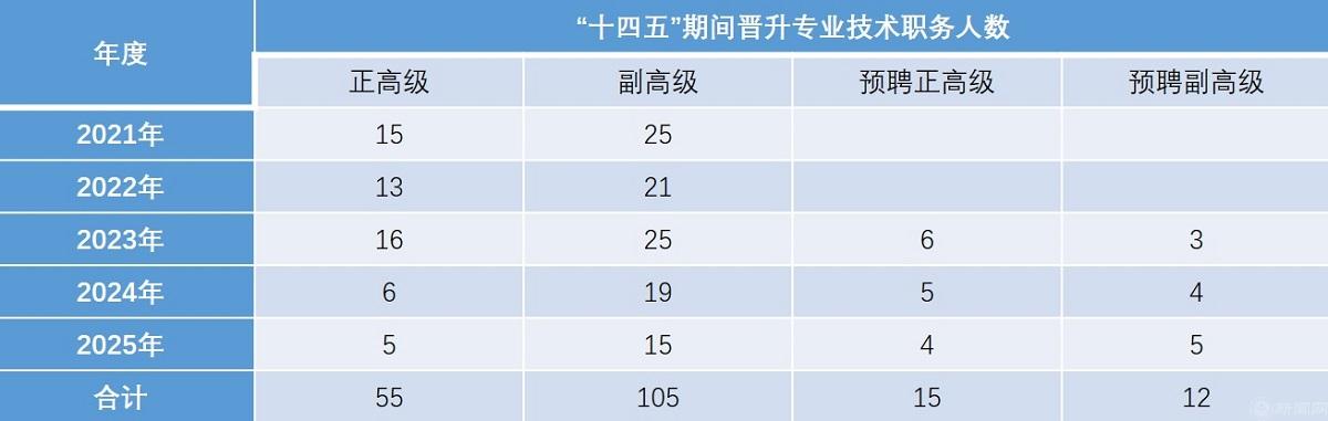 持續深化專業技術職務評聘機制改革,完善人才評價體系,晉升通道更加暢通,高級職稱梯隊更加堅實。修訂專業技術職務聘任辦法、基本條件等文件,推行分類、長周期、代表性成果與同行評價相結合的多維機制,通過增設綠色通道等30余項舉措,進一步強化職稱評聘政策導向與激勵作用。“十四五”期間,學校累計55人晉升正高級、105人晉升副高級職務;健全“晉升”與“預聘”雙通道,2023年實施預聘制以來,27人通過預聘獲得正高、副高職務,為青年人才成長提供了有力支持;對思政課教師實施單獨設置指標、單列評審條件、單獨組織評審政策,突出其育人職責與教學特點。